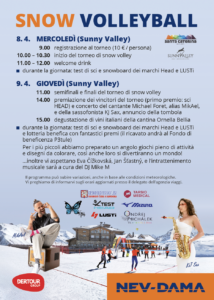 • Iscrizione al torneo di Snow Volleyball (quota di partecipazione: 10 € a persona).